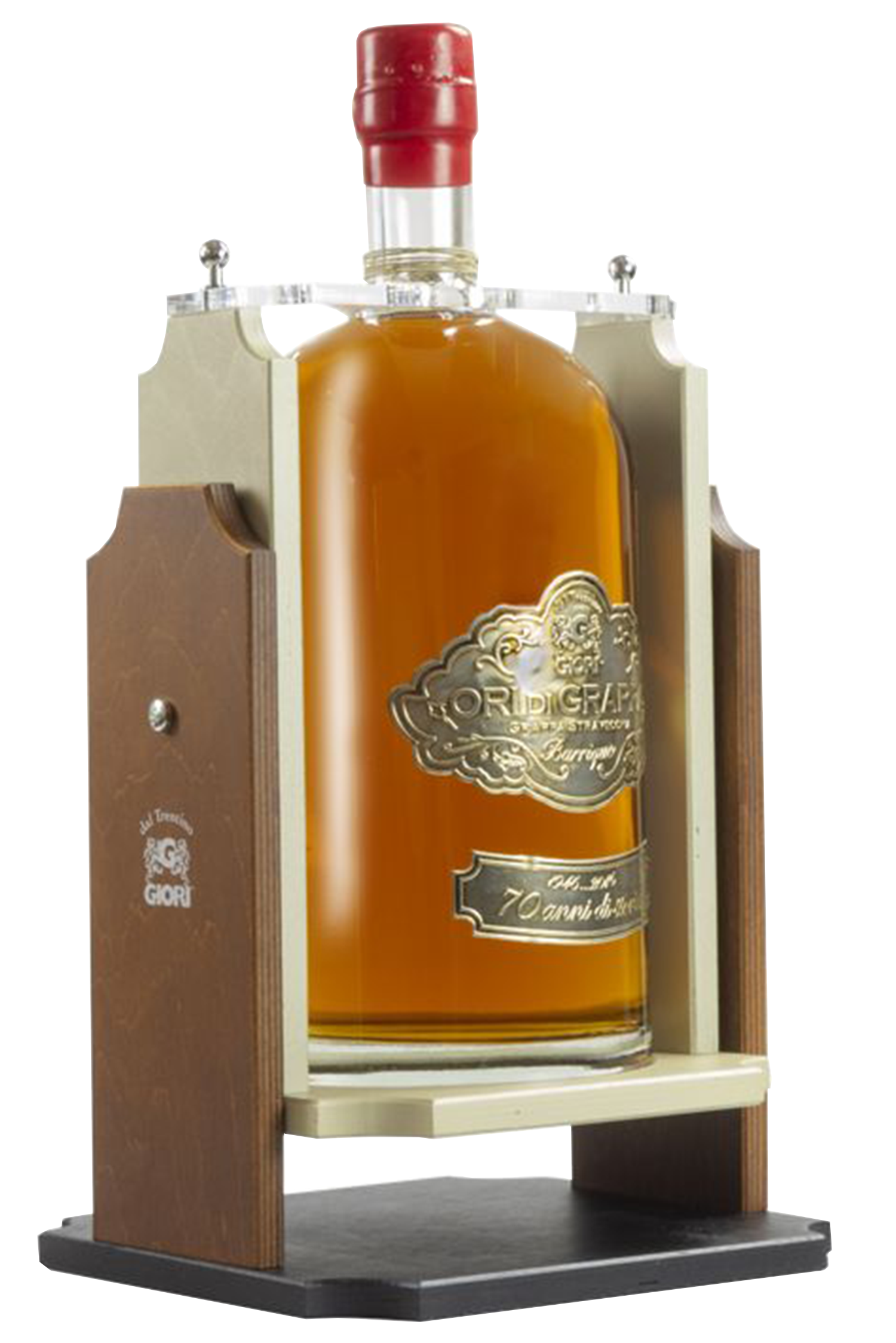 Der einzigartige „Grappa Super – ORI DI GRAPPA Barrique“ aus Trentino wird nur aus sorgfältig ausgelesenen Trauben produziert und 5 Jahre in speziellen Holzfässern gelagert. In seinem Geschmack zeigt er sich fruchtig und trocken. Die Traubengrundlage sind Chardonnay und Barolotrester. Die riesige 4,5 L Flasche in der Holzkiste und mit Maulbeerholzständer zum ausgießen, ist ein Geschenk das niemand so schnell vergessen wird.